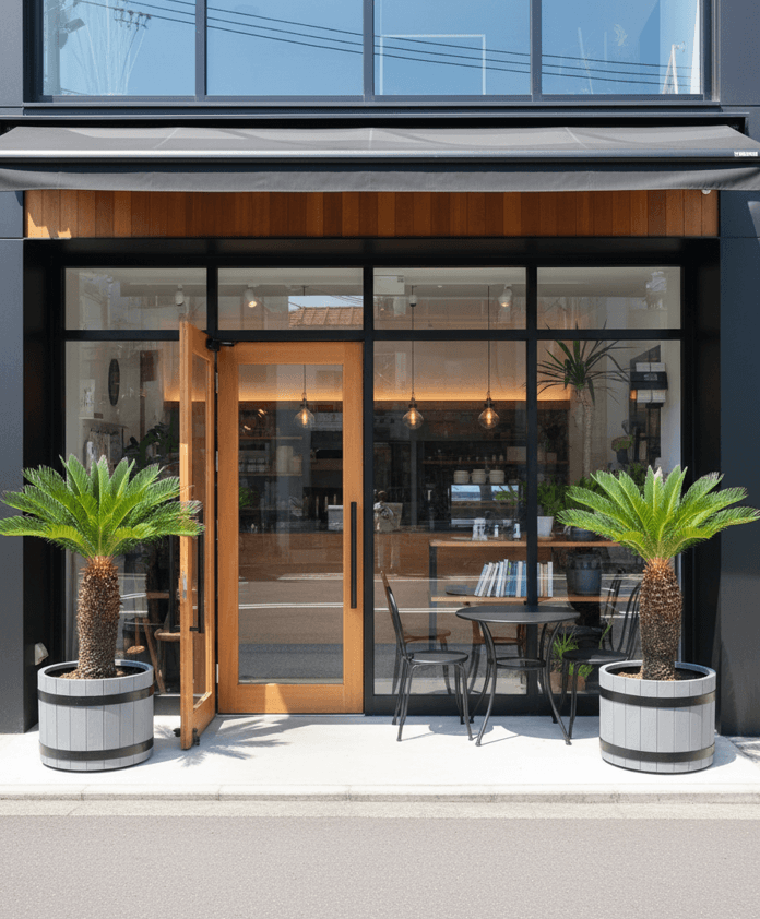② 店舗カラーに合わせたバレル調プランター