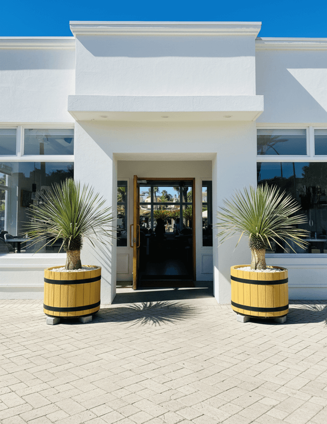 ① 店舗カラーに合わせたバレル調プランター